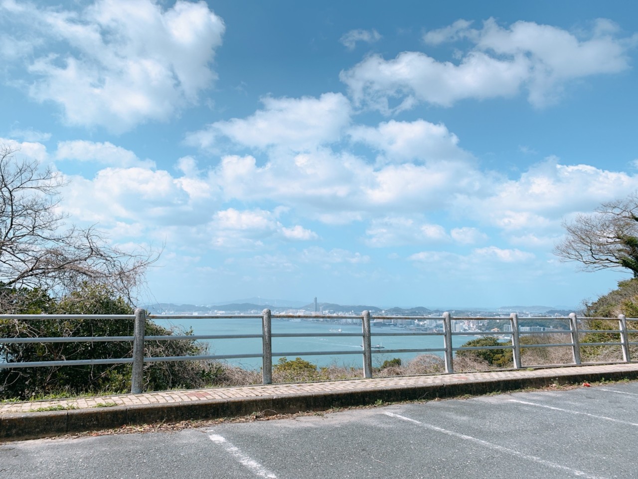 「めかり第一展望台」には駐車スペースがあり、関門海峡を一望できます。とっても気持ちが良い!