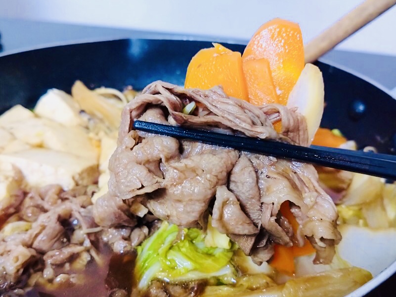 そして、もう半分は「すき焼き」にしました。とても柔らかくて味も染みこみやすく、口に入れるとくちどけよい食感。季節がらすき焼きは体もポカポカして幸せ感に包まれますね。