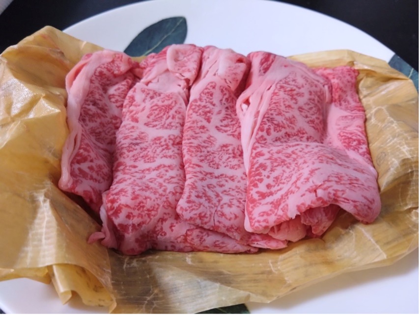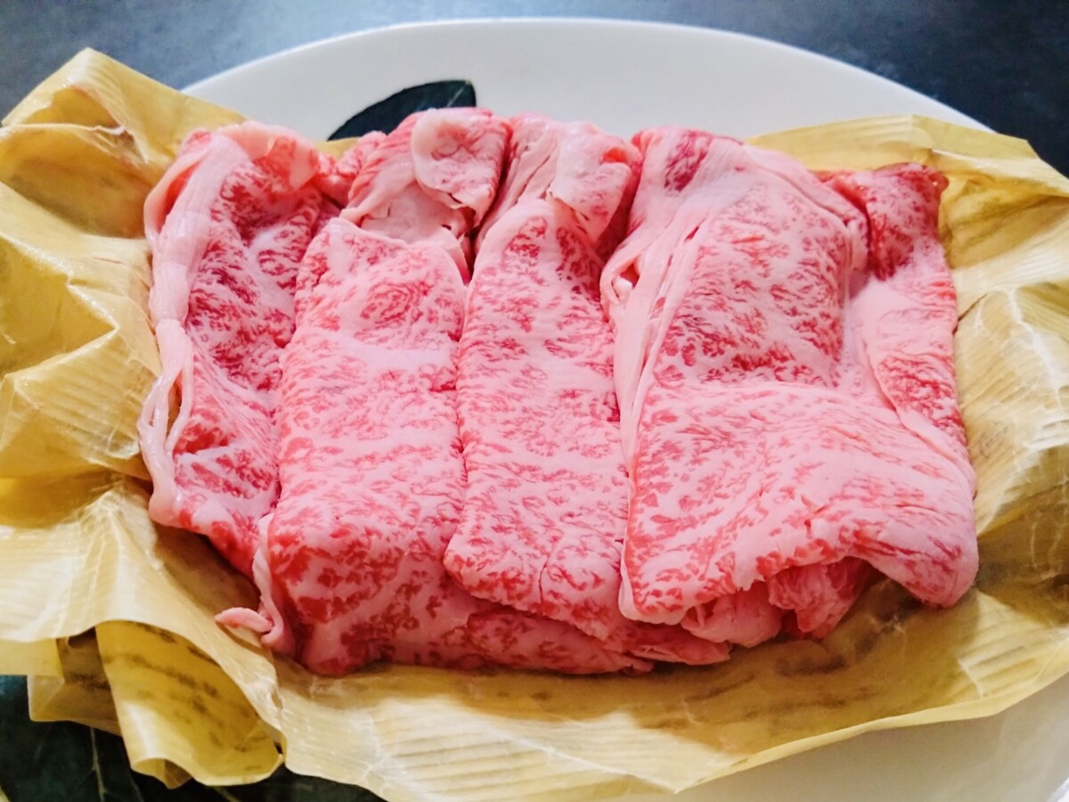 鹿児島黒牛「クラシタの輝きローススライス」は、購入した翌日に調理。なのにこのツヤ、美しさ!肉独特の臭みも全くありませんでした。