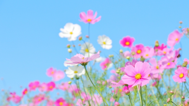 秋のコスモスの開花時期にあわせて行われる「則松金山川コスモスまつり」は、秋の恒例イベント。約20万本の色とりどりのコスモスを楽しむことができます。