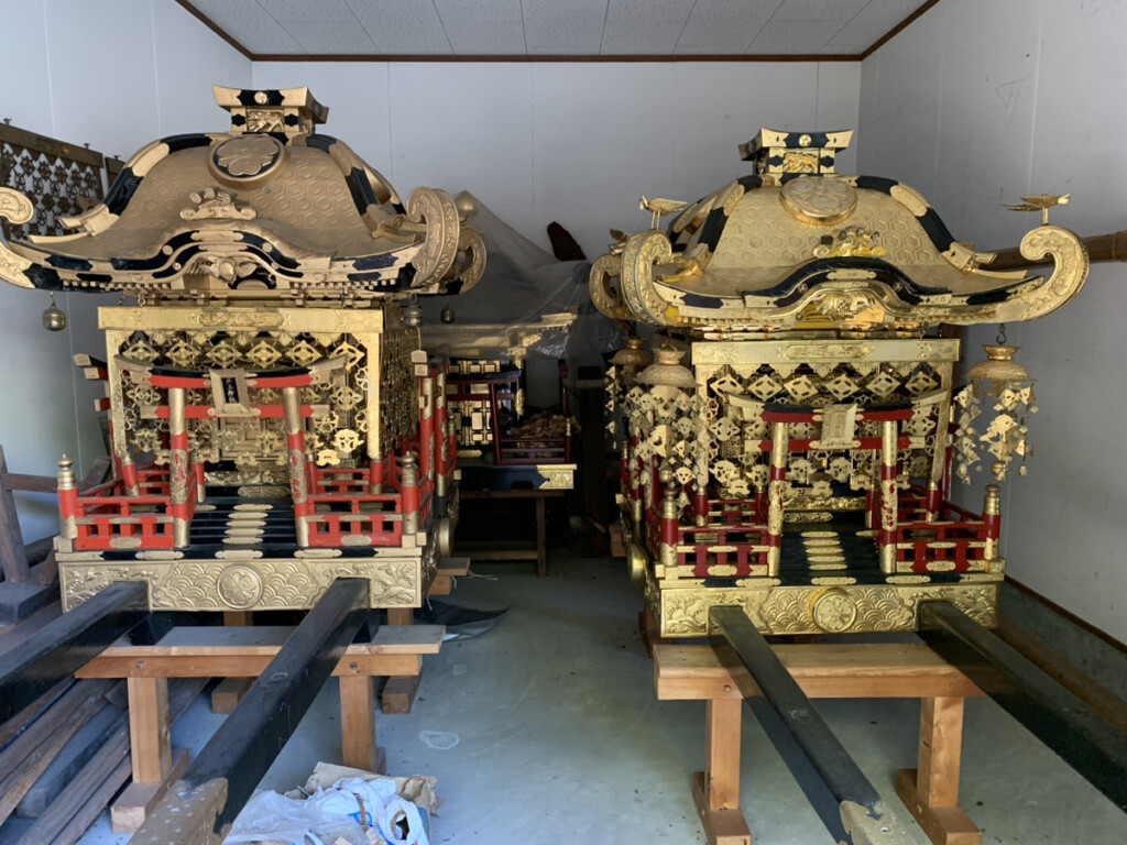 従来は、本宮を出発し、大里本町の八坂社や大里の商店街、柳御所と広い範囲で渡御していたそうですが、3年間のブランクがあるため、安全を第一にと、21日(土曜日)は本宮から柳御所まで、22日(日曜日)は柳御所から本宮までの約1.2kmの距離を渡御するそうです。