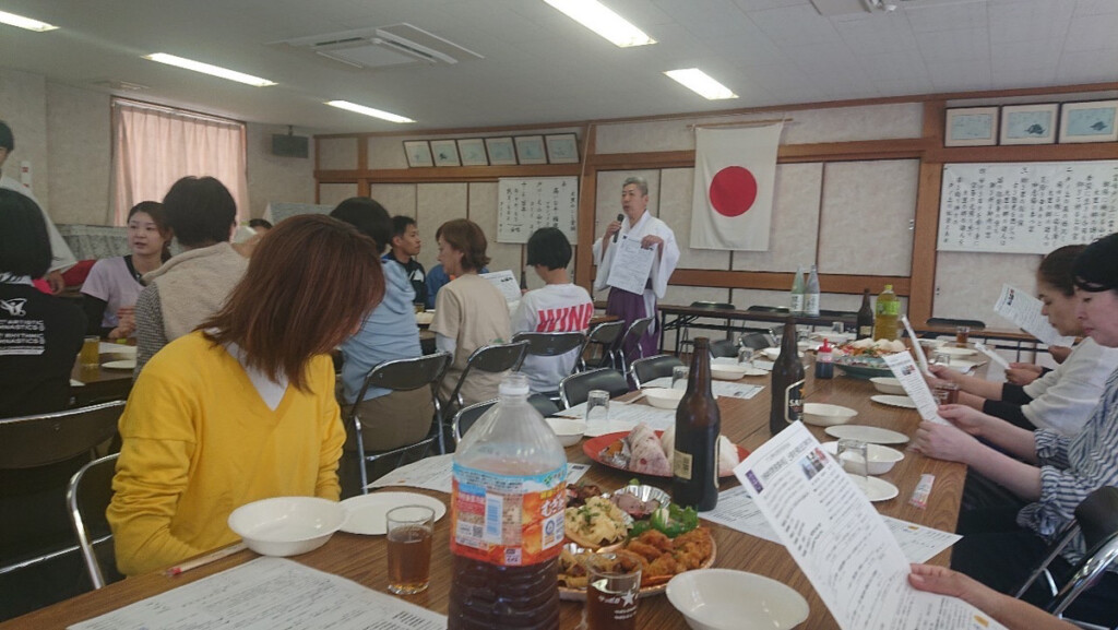 本宮到着後は、関係者の方々と直会(なおらい:祭の終了後に、神仏に供えた御饌神酒を神職をはじめ参列の方々で戴くこと)に参加させていただき、神事が無事に執り行えた安堵とともに、人と人とのつながりやふれあい、食を共にする心豊かな時間を過ごしました。
