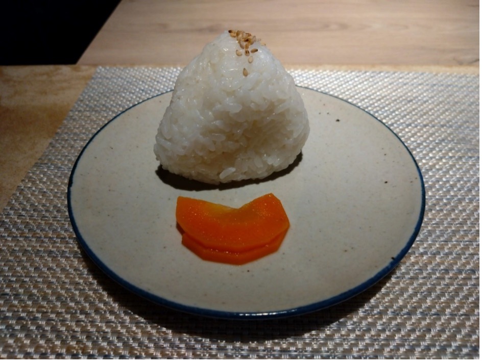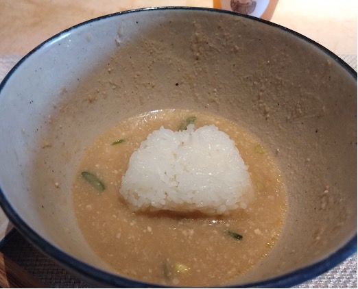 このおにぎりは塩も含めて味はつけられていません。これは、お好みで雑炊にもどうぞ!という店主の粋な心遣い。