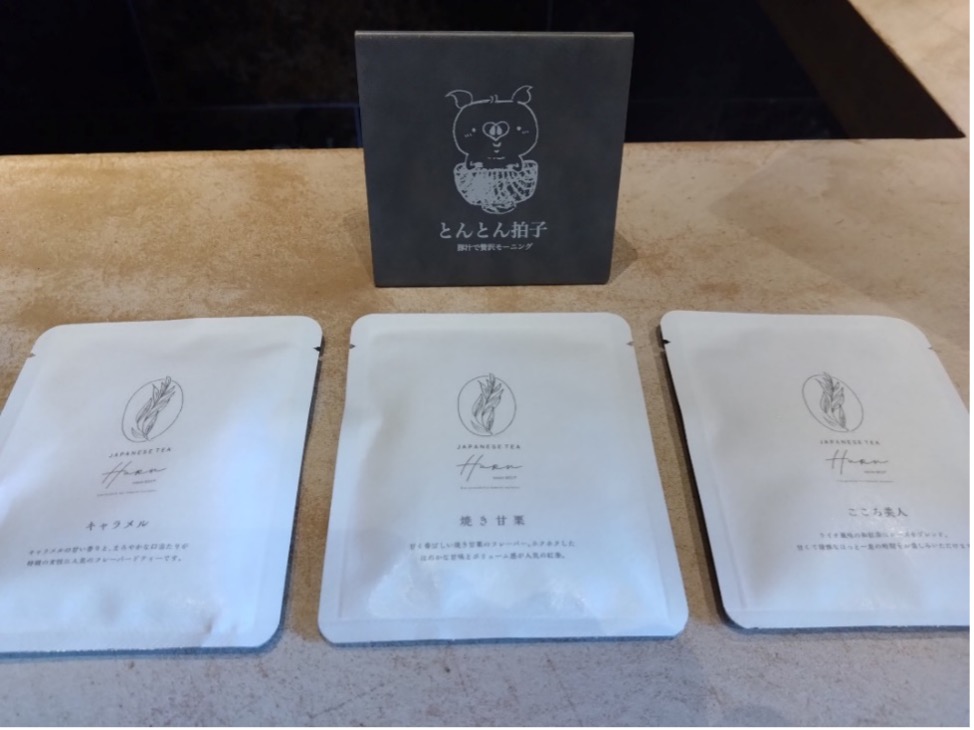 また、HORNで販売しているティーパック(2袋入り/300円)のラインナップから、とんとん拍子店主セレクトの「キャラメル」「焼き甘栗」「こころ美人」なども店頭で買うことができます。