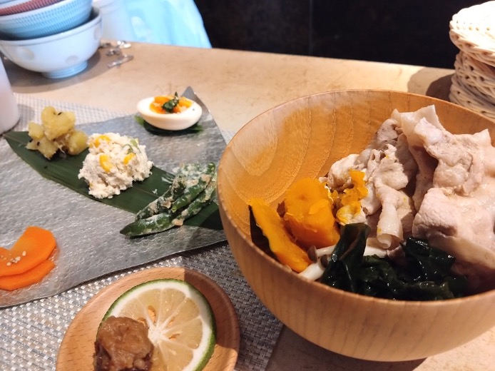 味変のサービスも粋で、10月は季節柄、「かぼす」が付いていました。豚汁にかぼすを入れたのは初めてでしたが、かぼすの香りがふわっと豊かに広がり、とても美味しかったです。