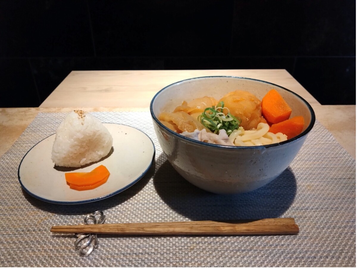 やわらかく美味な五島豚は、豚汁と肉じゃがとの二刀流の活躍。見ごたえ・食べ応え抜群で、食材がゴロゴロ&うどんは1玉(!)というから、かなりのボリュームです。