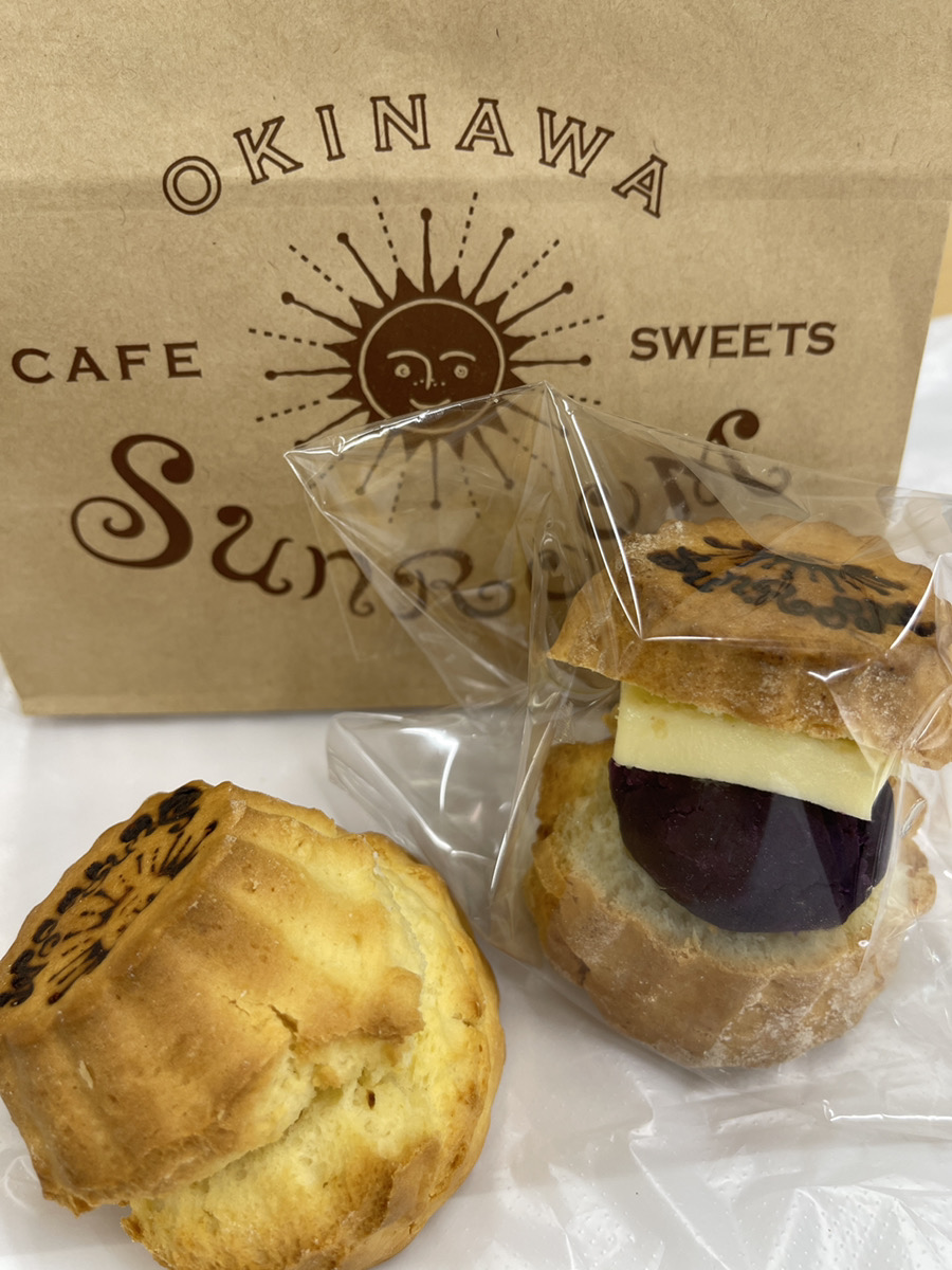 少し珍しい一品も。黒糖・紅芋などを使用したスコーンがあったので、こちらも食べてみました。黒糖スコーンは甘さがほどよく、紅芋スコーンは紅芋の餡とバターがスコーンの香ばしさと合わさって、沖縄の良さを感じられました。