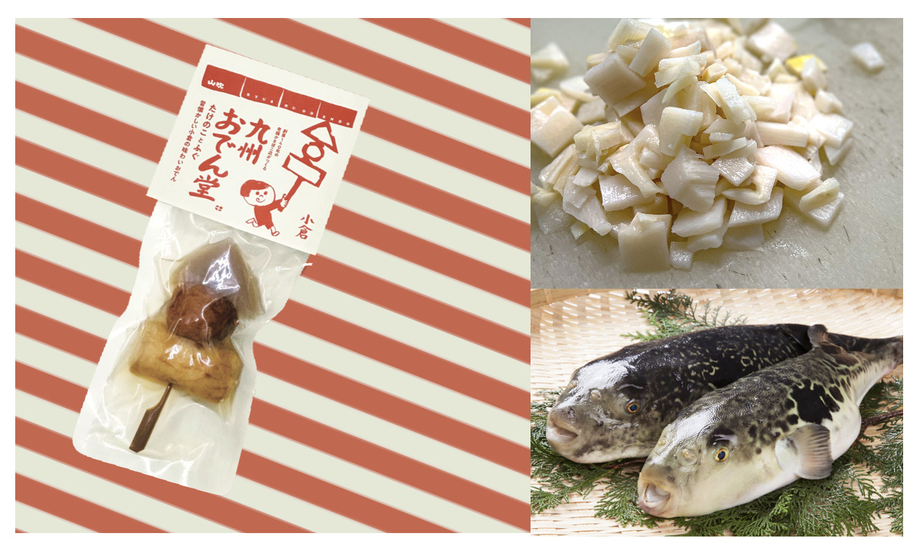小倉バージョンにはたけのこの食感を中心とした練り団子と、ふぐちくわを使用しています。