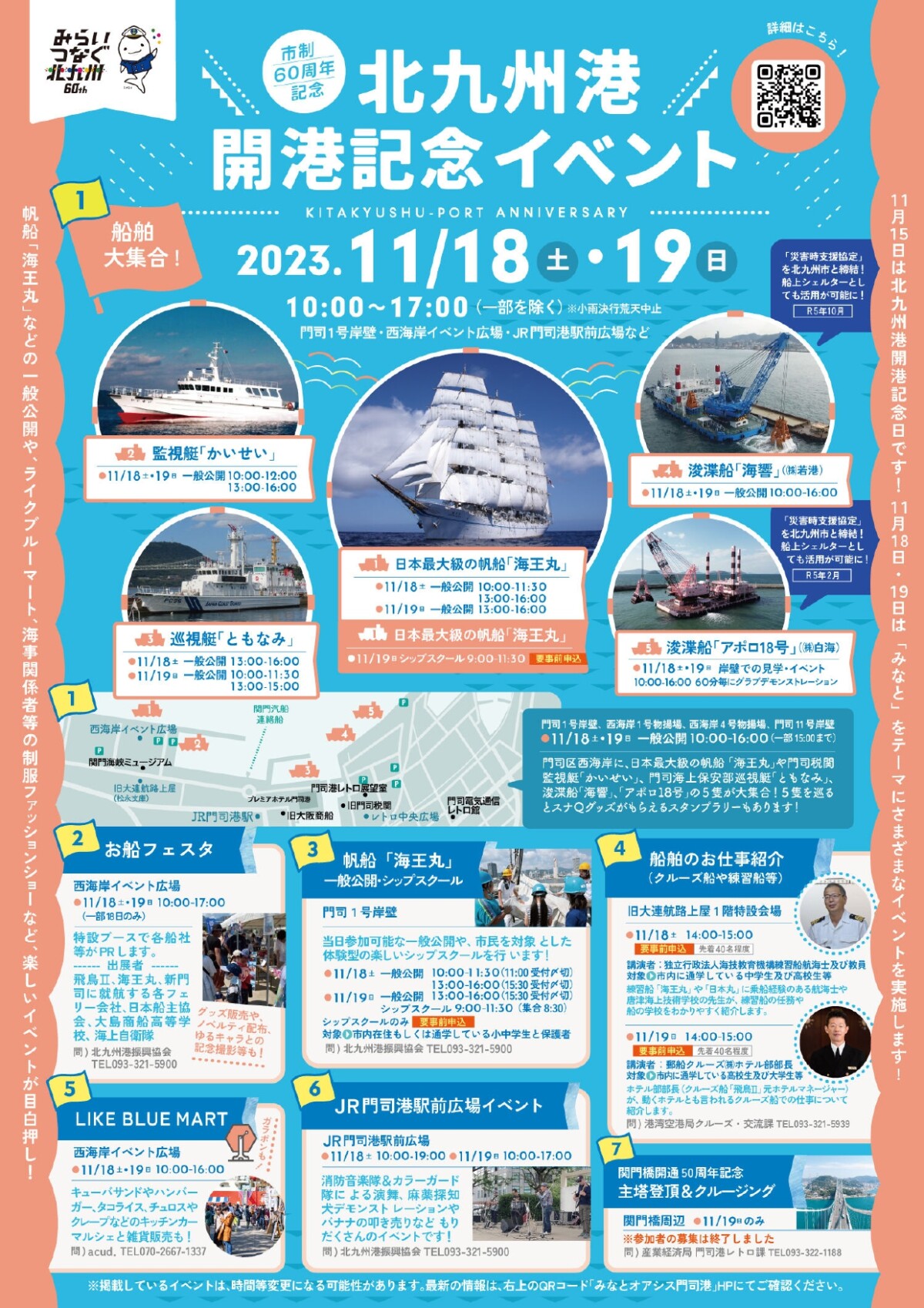 今年はこれを記念し、11月18日と19日に市制60周年記念「北九州港開港記念イベント」が門司区西海岸地区一帯において開催されます。