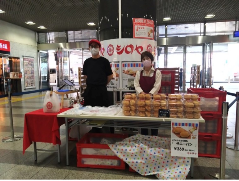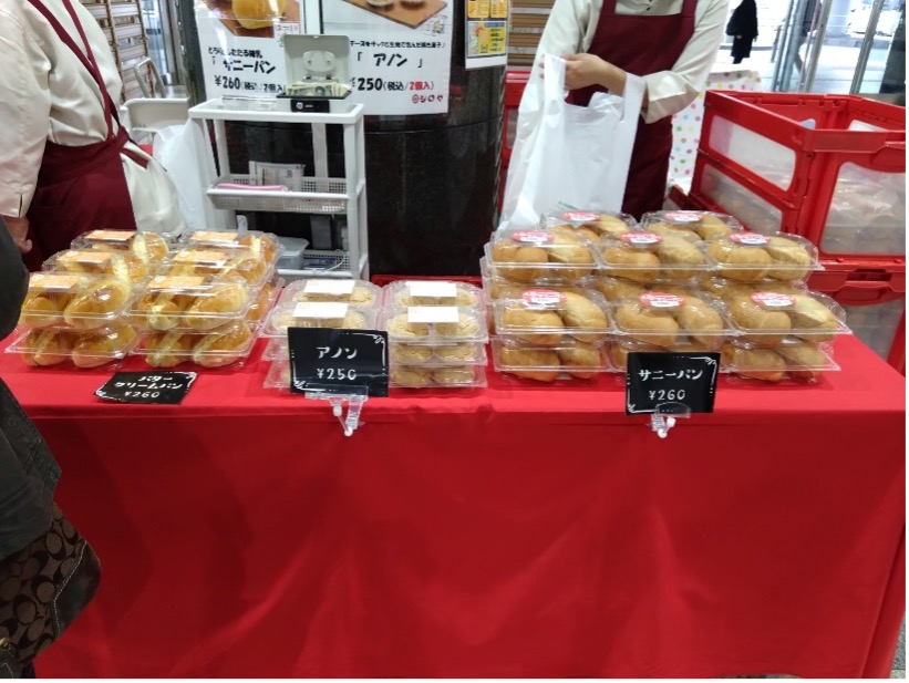 (期間限定SHOP開店2日目の様子)小倉駅近くの会社では勤務する筆者は、期間限定オープン2日目に初訪問。昼休みの時間帯に行き、サニーパン(2個入り)を購入。「アノン」は午前中のうちに完売したとのことでした。