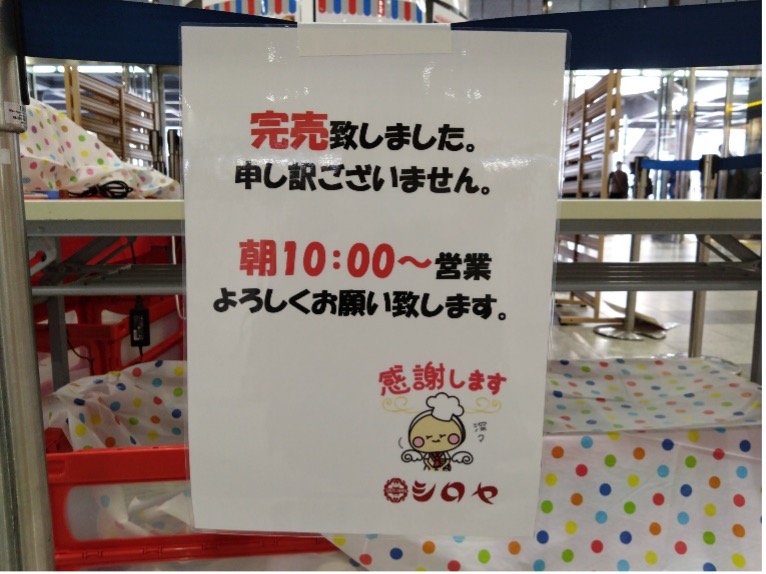 初日の様子をスタッフの方に聞くと、午後3時にはすべて完売したそうです。初日は行列はなかったものの、はじめての週末あたりから開店前に行列、その列は販売開始するも途切れることなく、午前中のうちに完売…というパターンになっているようでした。