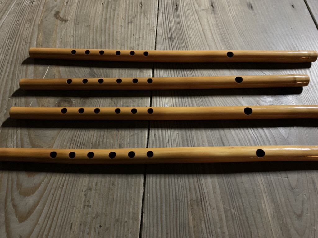 大積神楽で使われる笛は、神楽に合うようにと、竹選びから始まり、吹き手に合わせて保存会のメンバーが一つずつ手作りしているのだそう。