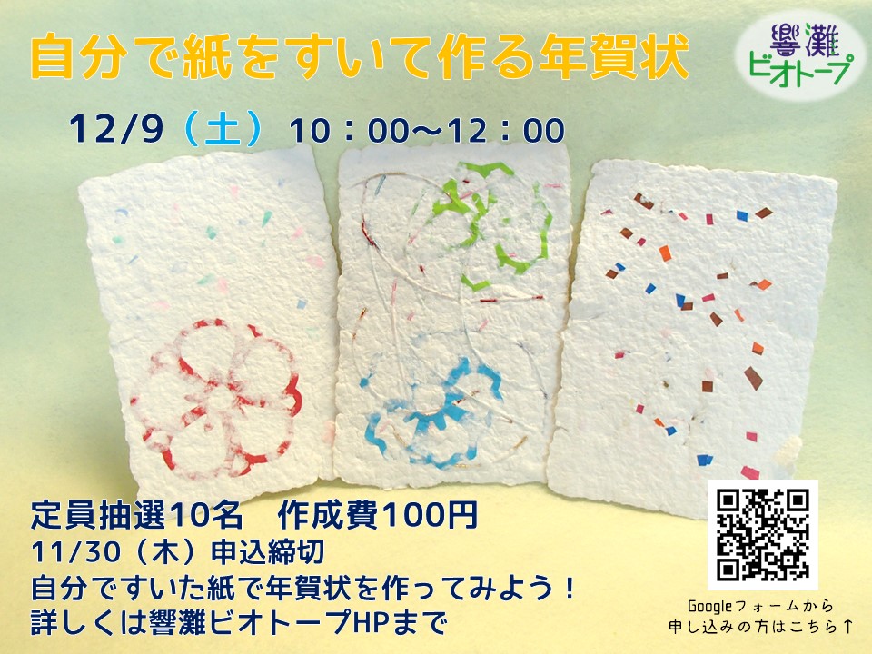 「自分で紙をすいて作る年賀状」イベントの参加者募集/響灘ビオトープ