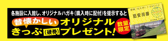 対象施設に入館し、「1‐DAYパス」購入時に配布されるオリジナルハガキを提示すると、昔懐かしい「オリジナル(硬券)きっぷ」が数量限定でプレゼントされます。