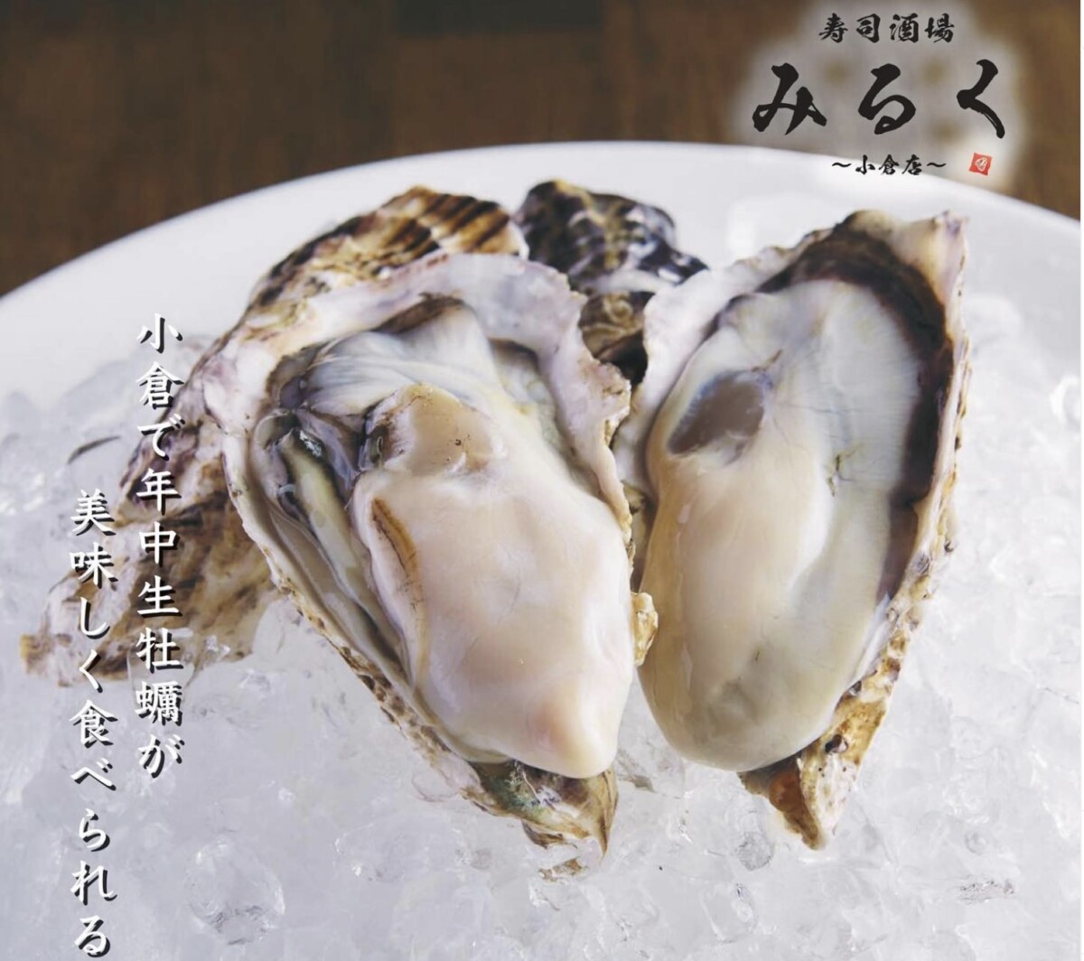 「寿司酒場みるく小倉店」より提供また、年中新鮮な牡蠣も食べられるといい、生牡蠣以外にも焼き牡蠣や蒸し牡蠣など牡蠣料理が多彩です。