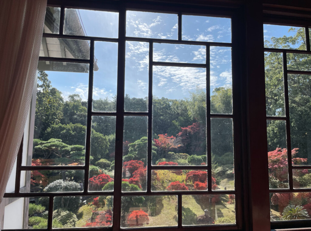 室内の窓から見える庭園の景色はまるで、1枚の風景画のように感じられました。