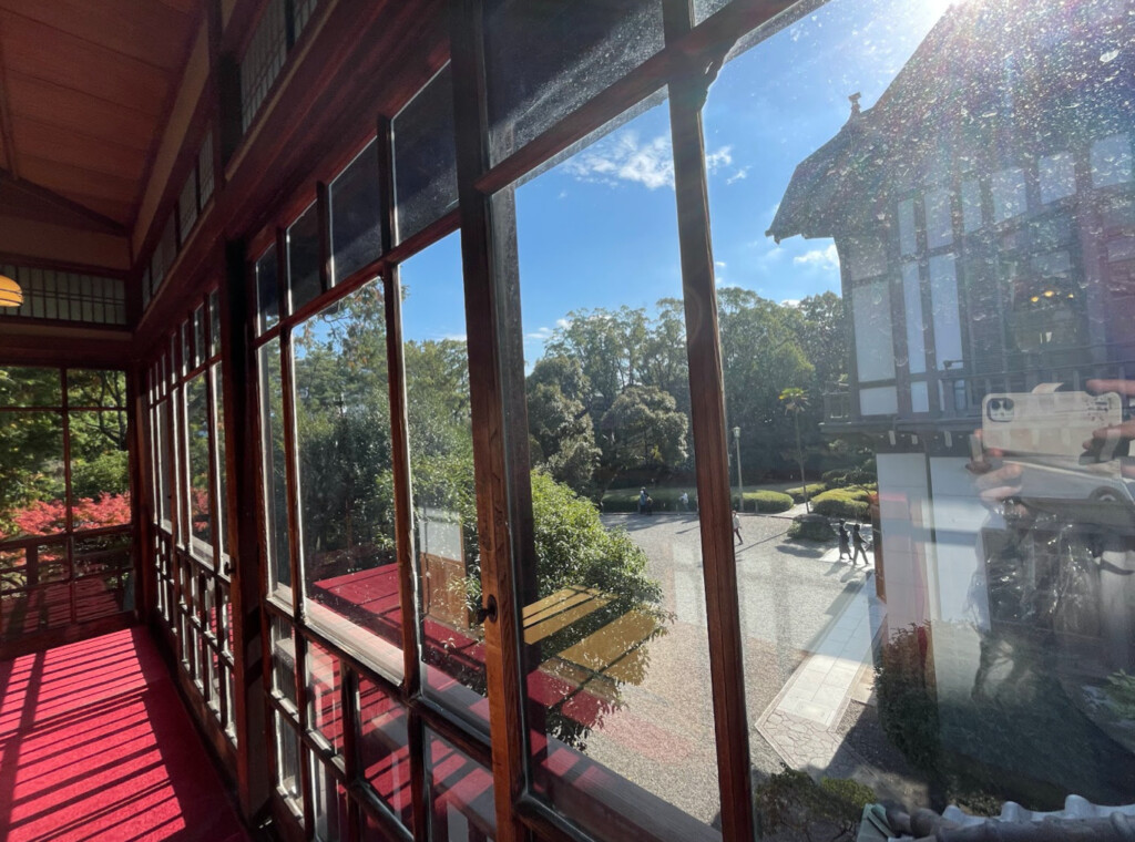 洋館に隣接する日本館にもお邪魔し、広い縁側から洋館を眺めると、ゆったりとした時間が流れていくようでした。