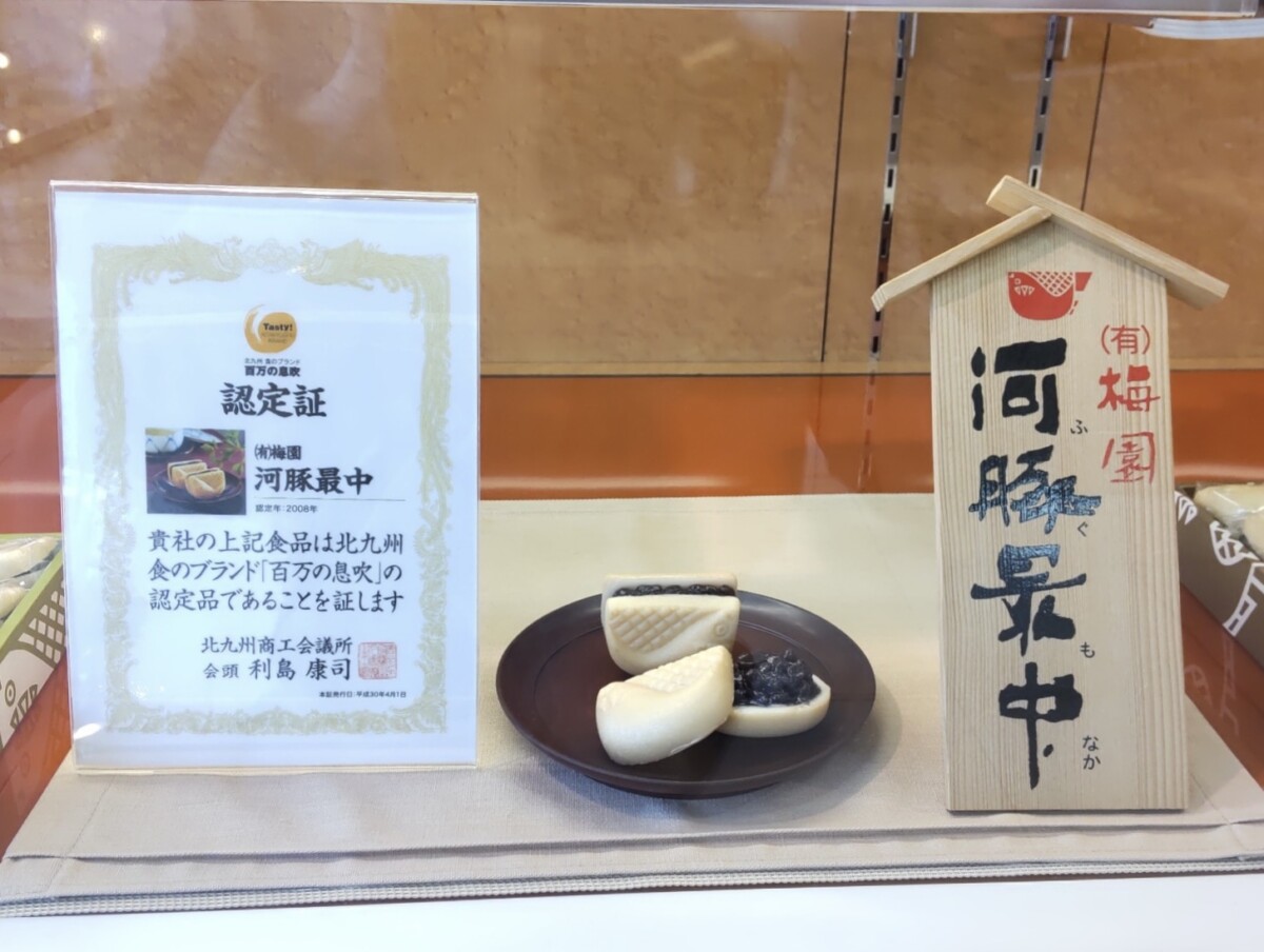 10月25、26日に北九州の旧安川邸で行われた将棋の「第36期竜王戦第3局」では、北九州市民にとって馴染みのある、あの味この味が2人の棋士に提供されました。その中の1つ「河豚最中(ふぐもなか)」を販売する「梅園(うめぞの)門司駅前本店」をご紹介します。