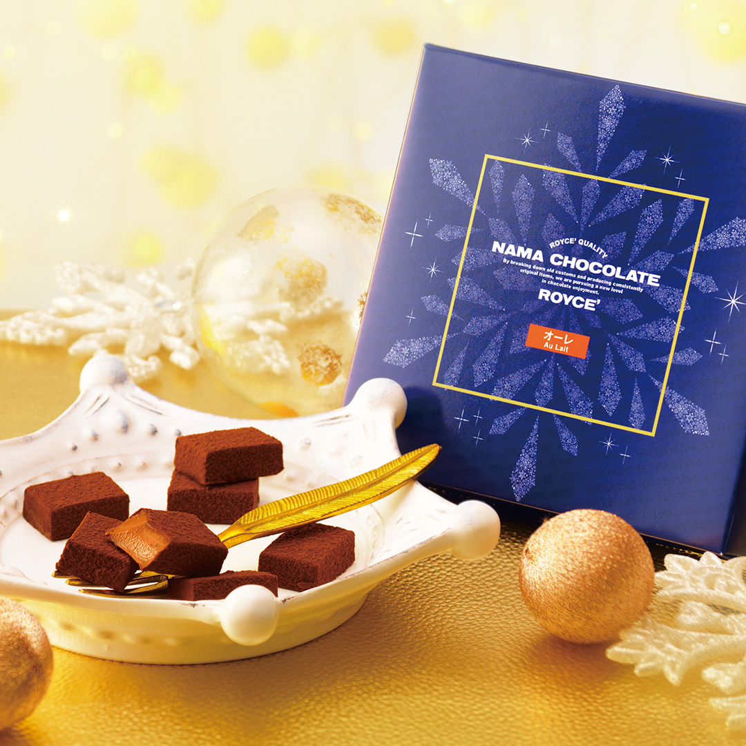「生チョコレート<オーレ>(ウィンターパッケージ)」は、北海道の生クリームや洋酒をプラスしたロイズの生チョコレート人気NO.1商品。繊細で美しい雪の結晶を描いたスペシャルパッケージでの販売となっています。