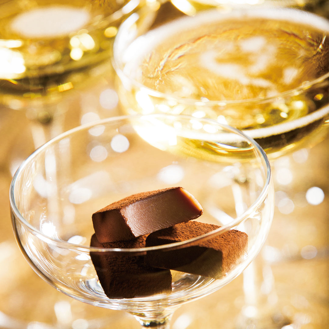「生チョコレート<シャンパン ピエール ミニョン>」は、フランス・シャンパーニュ地方のシャンパン ピエール ミニョンをミルクの風味のチョコレートに掛け合わせたもの。華やかに香るフルーティなシャンパンの香りが楽しめます。
