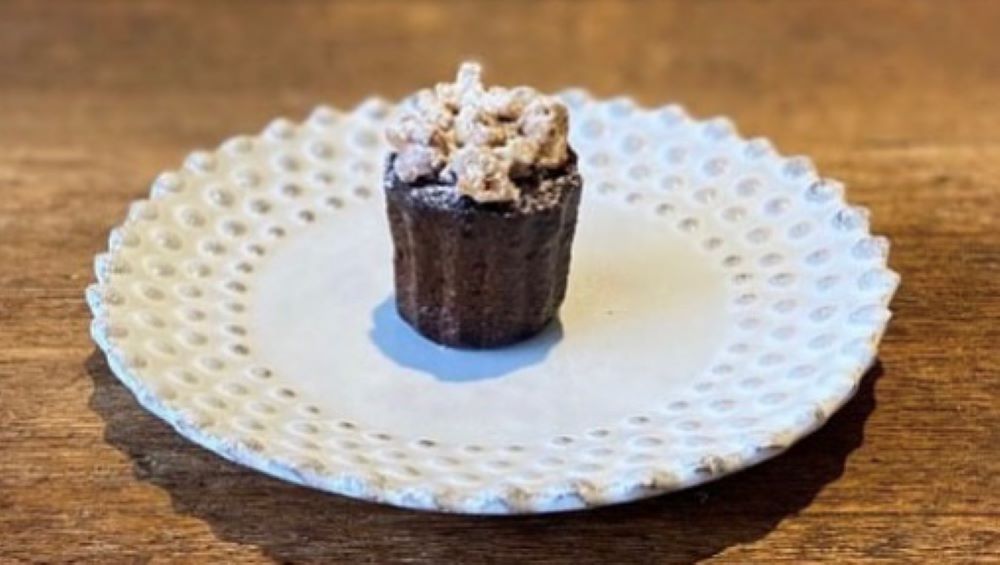 「パンデピスショコラ」は、ココアとハチミツを練り込んだ生地に6種類のスパイスの香りを楽しめるカヌレで、上にはビターチョコとクルミ、砂糖がのっています。