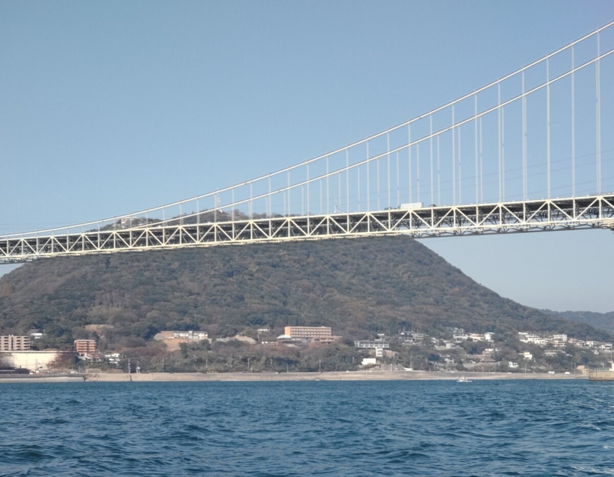 関門海峡は日本でも3番目に潮の流れが速く、結構揺れを感じますが、とても気持ちが良いです。時々、そばを通った船からくる波が「Santa号」を大きく揺らしますが、まるで楽しいアトラクションのよう。