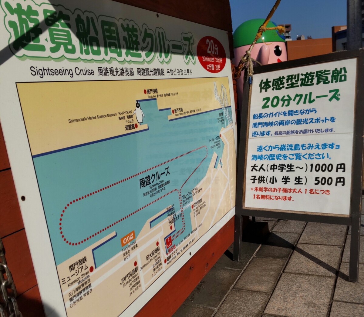 「関門海峡クルージング」では「Santa号」より大きな船で運行するそう。どちらも悪天候による運行中止もあるので、電話か遊覧船乗り場で直接確認しましょう。