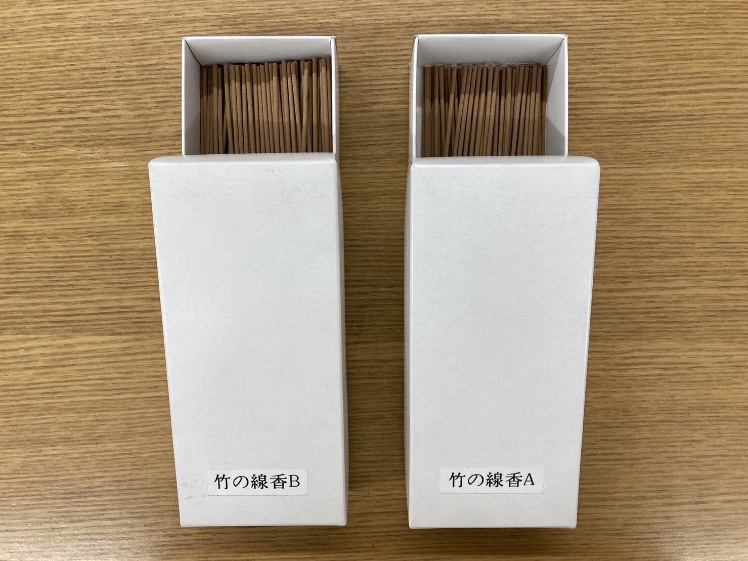 その後、安定生産と調香に取り組んだ野上さん。特に、調香については、お香である以上妥協はできないことから、100種類以上のサンプルを制作したそうです。ポイントは、「清涼感」「苦み」「水っぽさ」、そして「お香っぽさ」。竹のイメージとお香の香りをうまく調合させるのに苦労したのだそう。