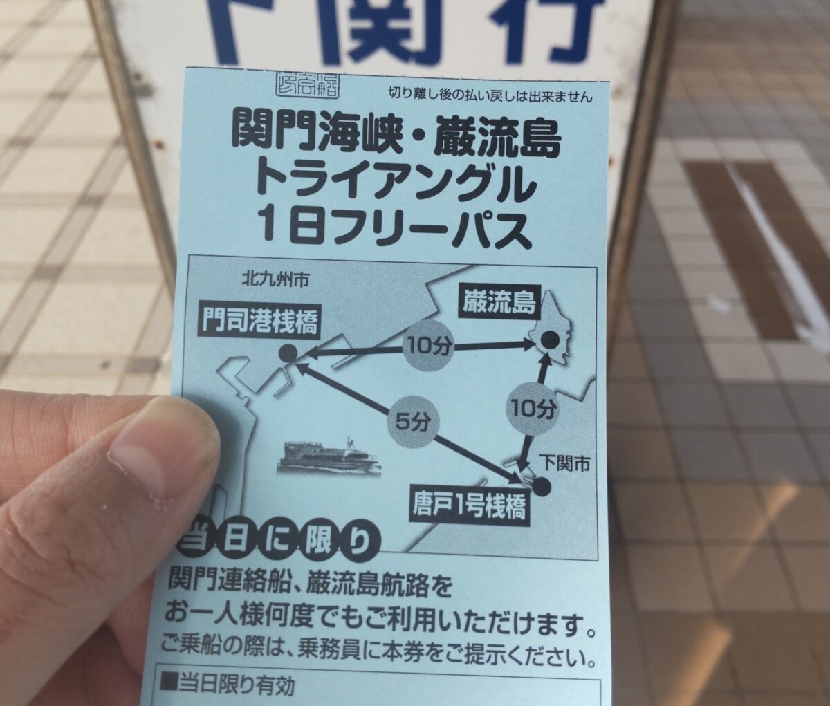 「巌流島航路」の乗船は、平日は唐戸桟橋からのみ可能。そのため、門司港からは一度「関門連絡船」で唐戸へ渡ってから乗り換えが必要です。また、同航路でも「トライアングルフリーパス」を使用できます。