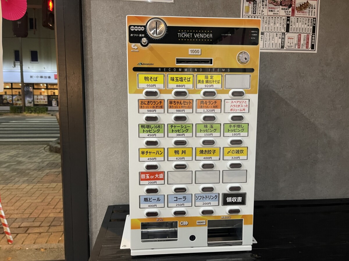 ランチタイムは、入り口左手の券売機でチケットを購入して渡します。メインは、紹介した「鴨そば」950円、「味玉塩そば」880円、「黄金鯛出汁そば」920円。麺とご飯類が付いたセットになったメニューもあります。一番注文が多いと感じたのが、メインの麺のいずれかに半チャーハンが付いた「半ちゃんセット」1320円でした。