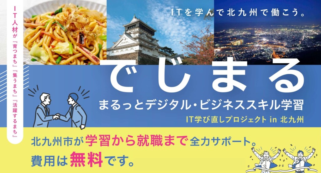 北九州市が展開する、無料で受講できるデジタル・ビジネススキル学習プログラム。興味がありそうな知人・友人・家族のみなさんにぜひご紹介ください!
