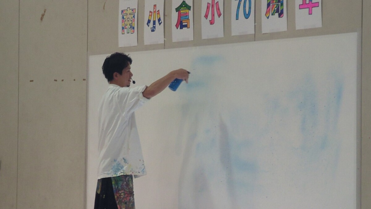 北九州出身の詩人&画家<木村詩太さん> 母校・南小倉小学校でライブペイント【北九州市小倉北区】