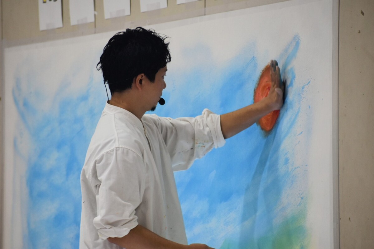 広い体育館に音楽だけが響き渡り、その場にいる全員が息をのむような静けさで、詩太さんが描く姿をただ見守ります。