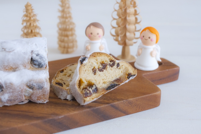 丸みをおびた細長いフォルムで、中にはドライフルーツやナッツがぎっしり。表面は雪のように粉砂糖でコーティングされたシュトレンは、焼きたてをすぐ食べるのではなく、クリスマスまでのカウントダウンを楽しみながら少しずつ味わうもの。日を追うごとに味わいを増すシュトレンを薄くスライスして、コーヒーやワインと一緒に楽しんでみませんか。