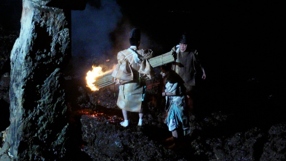 最後はまだ熱い残り火のある焚火の中を歩く「火渡り」へと続きます。