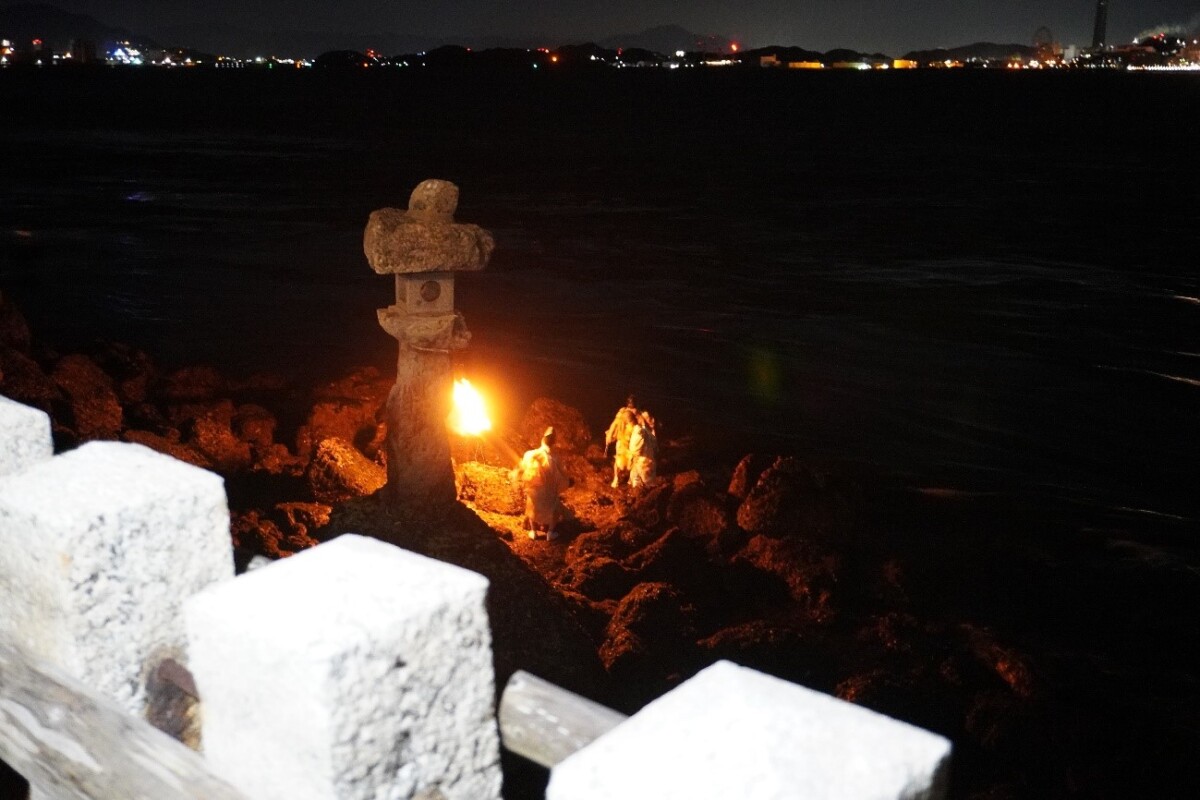 境内では火も焚かれていますが、夜は気温が下がり、海風が強い事が多いのでお出かけの際は温かい服で行きましょう。