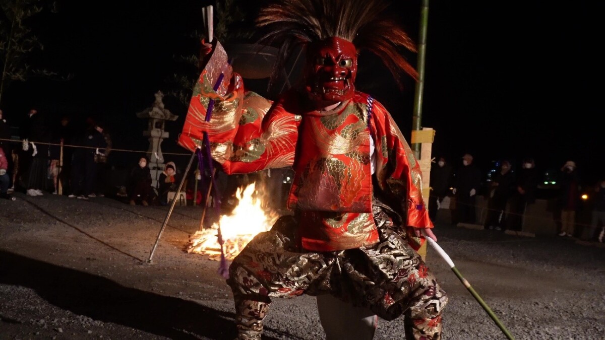 折尾神楽に対して、豊前(京築)神楽は岩戸神楽の系統で、英彦山や求菩提山などの山伏の流れも組んでおり、修験道を色濃く残す演目が多いように思います。