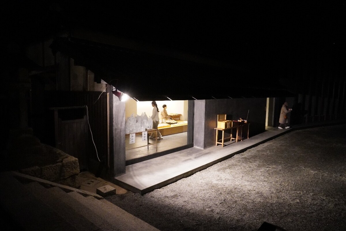 (普段夜間は閉まっている社務所が今日だけ特別に煌々と明かりを灯している)