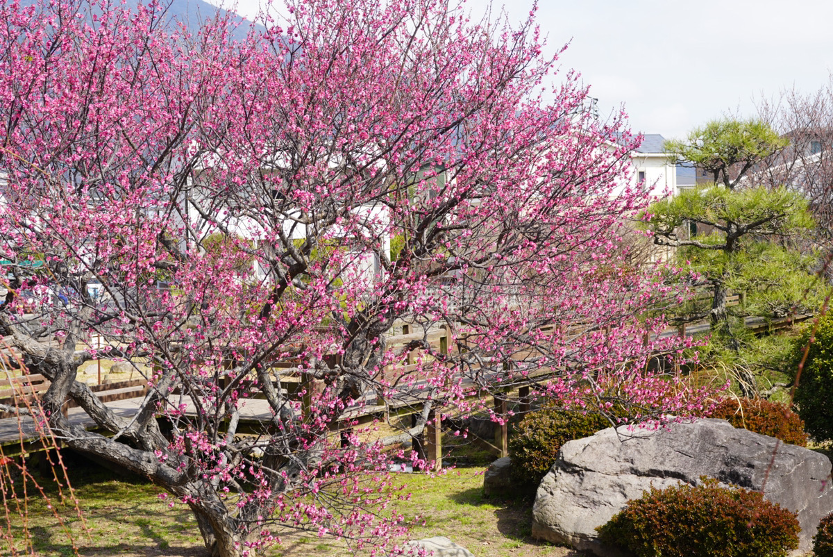 また、広さ約4000平方メートルの日本庭園では、枝垂れ梅も見ることができ、いろいろな梅の撮影を楽しめますよ。