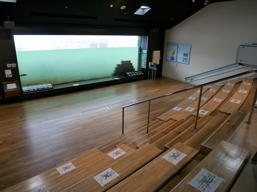 「河川観察窓」は、紫川にふるさとを愛する中学生のアイデアから生まれました。クロダイやスズキ、ヒガンフグなど、紫川に暮らす生き物たちが窓の向こうに姿を現します。