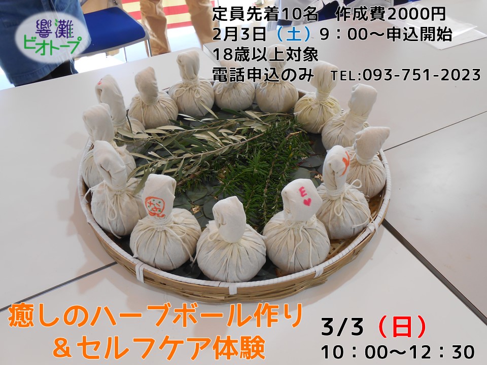 「癒しのハーブボール作り&セルフケア体験」参加者募集!/響灘ビオトープ