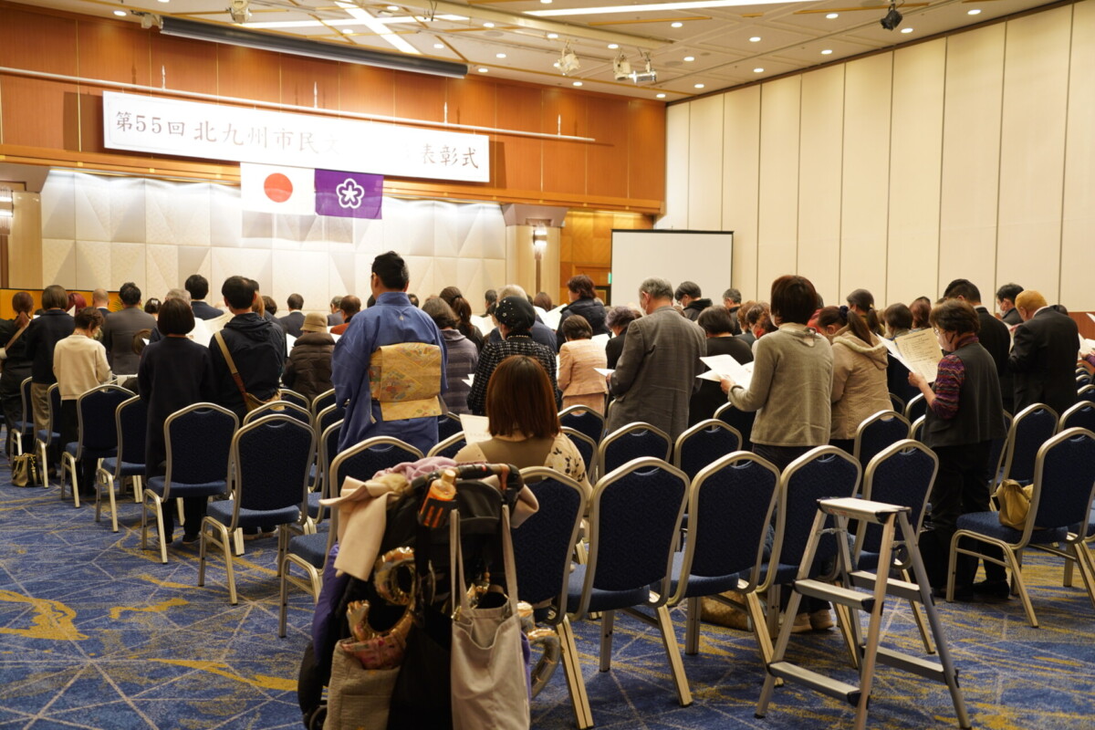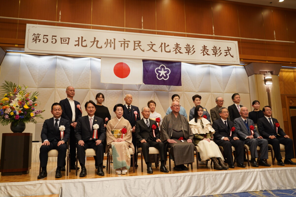 1月29日、リーガロイヤルホテル小倉で第55回北九州市民文化表彰の表彰式が行われました。市民文化賞を受賞した寿司職人の天野功一さんや市民文化奨励賞を受賞した吉本実憂さん、市民文化功労賞を受賞した7名と1団体が表彰されました。