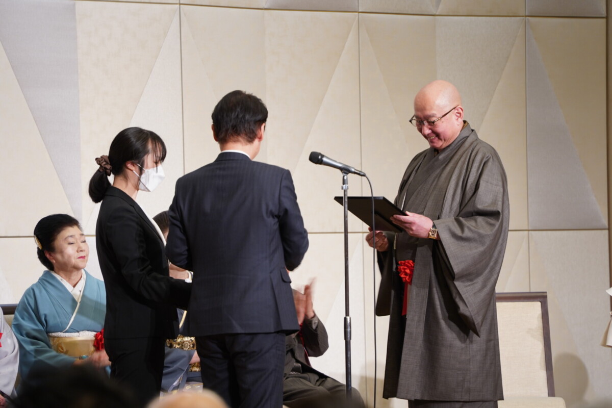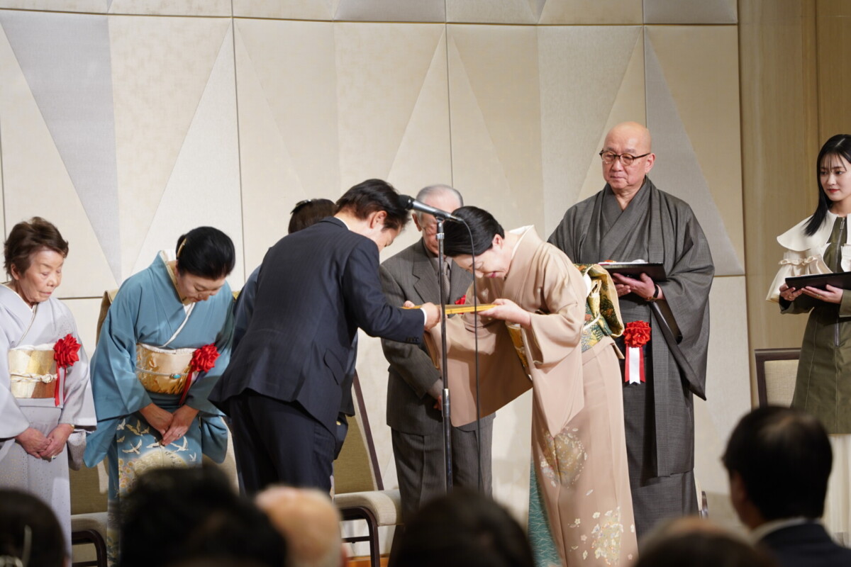 市民文化功労賞は、代表として邦楽で受賞した大久保道子さんに表彰状が贈られました。会場の観覧者から受賞者のみなさんへむけてたくさんの拍手が送られます。