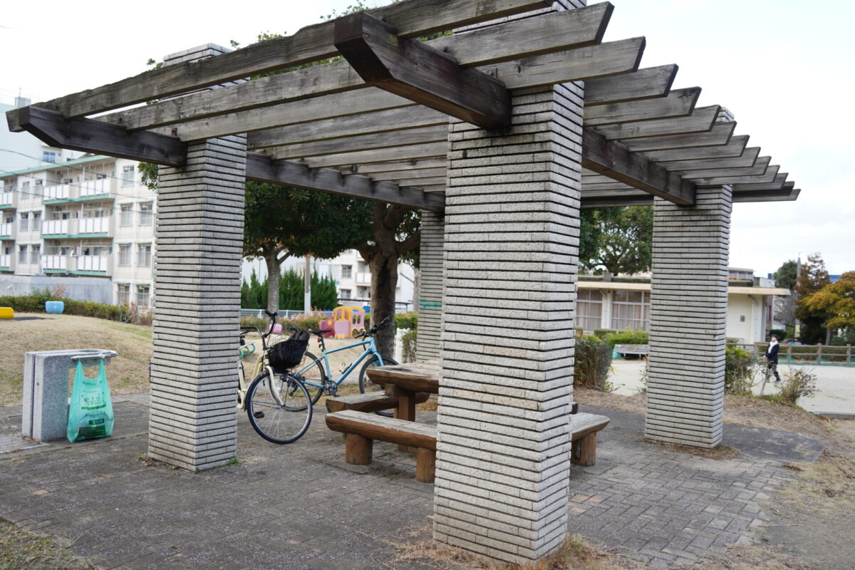 公園内には東屋もあり、屋根はないので雨をしのぐことは難しいですが、ちょっとした休憩はできそうです。