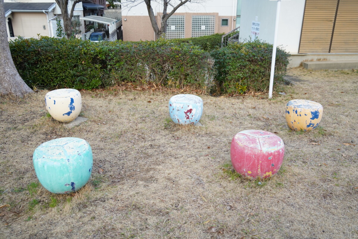 気になったのは色とりどりのイスのようなもの。園内数箇所にあるのですが、イスとして利用するのか上って遊ぶ遊具なのかわかりませんでした。