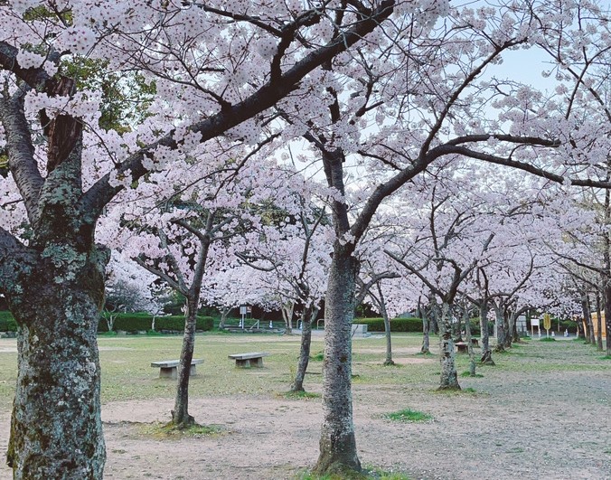 (画像:高坊西公園の桜)意外な桜スポットの1カ所目は、高坊西公園(北九州市小倉北区高坊1-12)。春になると、公園内に複数ある桜の木がピンクに色付きます。