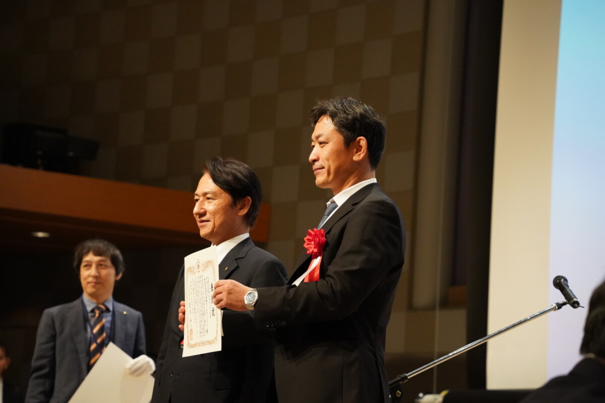 最後の記念撮影では、司会者からの「ガッツポーズしましょう!」という言葉に合わせ、会場全体がにこやかな表情を浮かべ表彰式は終了しました。
