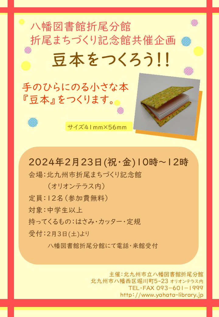 ▶北九州市立八幡図書館 「豆本を作ろう!!」の詳細はこちら