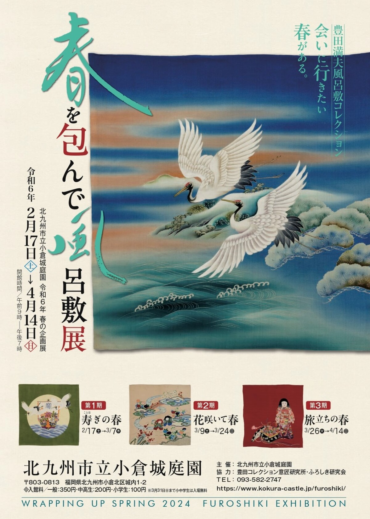 小倉城庭園(北九州市小倉北区城内1-2)で、春の企画展「春を包んで風呂敷展」が開催中です。期間は4月14日まで。