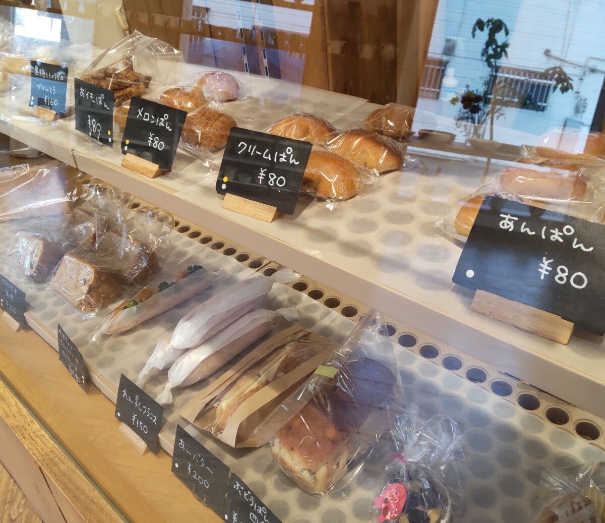 「うちのぱんとうつわ」のパンは手のひらに収まるサイズの小さめパンで、いろいろ食べたいという筆者みたいな欲張りにもちょうど良いです。並んでいるパンの多くが1つ80円で、お手頃に感じます。